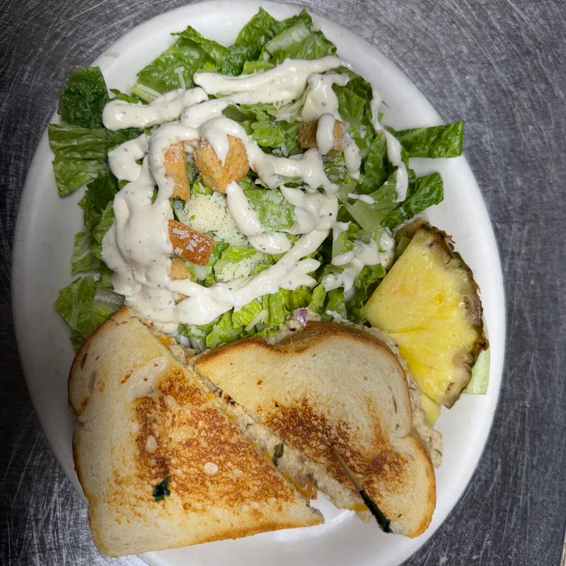 All sandwiches and burgers are served with your choice of French fries or mixed green salad | All Burgers come with lettuce, mayo, tomato, onion, pickle, and French fries, or salads • Substitute Caesar, Greek +$3.00 | substitute fruit for +$4.00