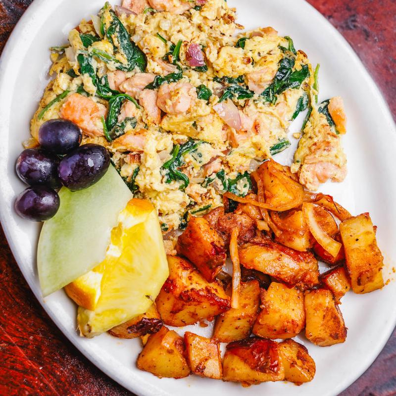 Sub Chicken Apple Sausage, Hot Link, Beef Patty, or Ham for Bacon +$3.50